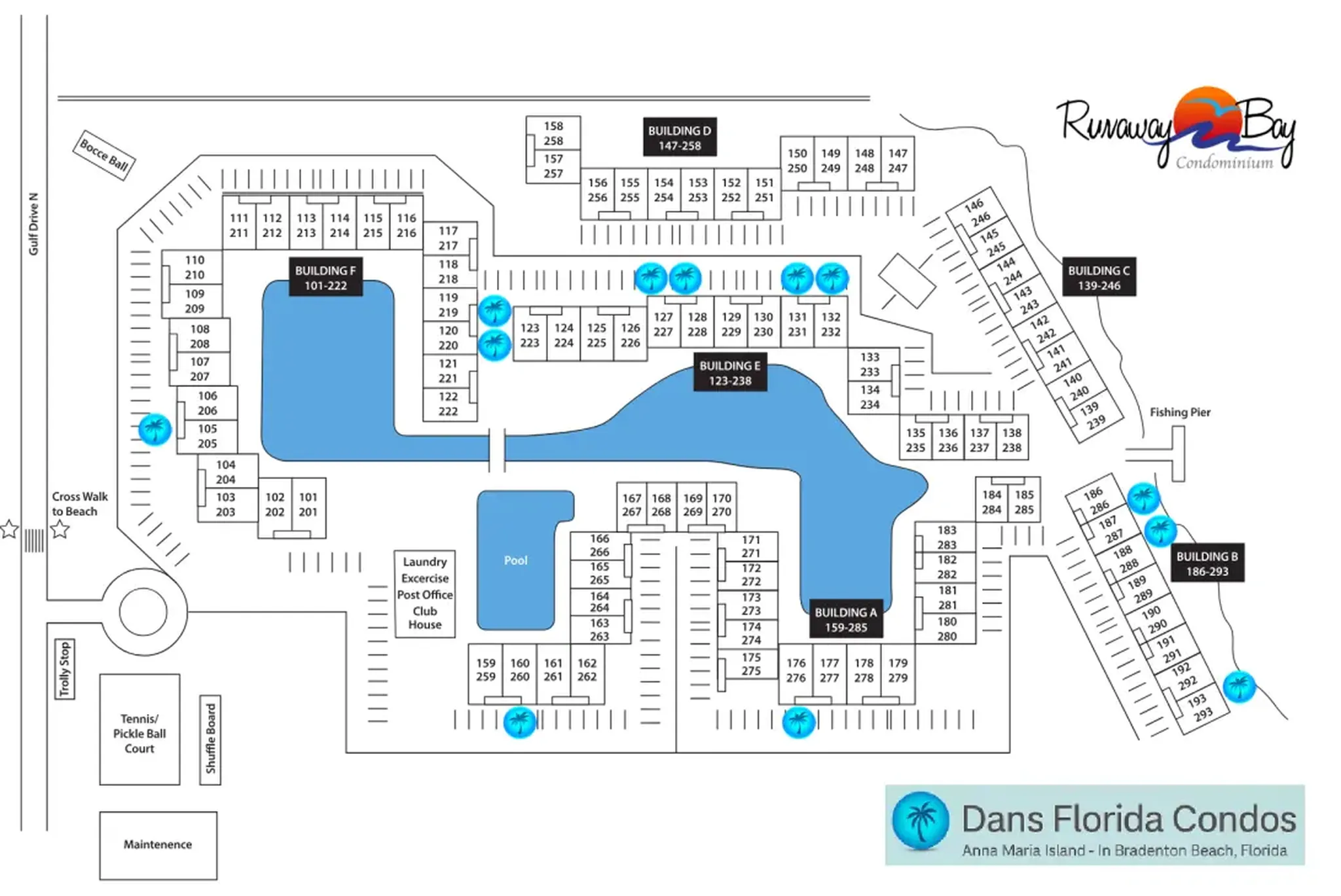 Dans Florida Condos are situated within the esteemed Runaway Bay Condominium Community, a meticulously maintained complex located on the picturesque Anna Maria Island, renowned for its beauty.